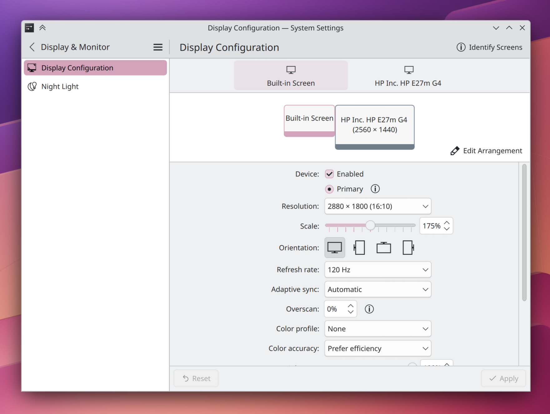 Plasma 6.4 also has an improved display configuration page where the screen arrangement view is hidden when there's only one screen (makes sense), and a much more obvious screen chooser at the top to make it clear what screen is currently selected for configuration along with any connected but disabled screens.